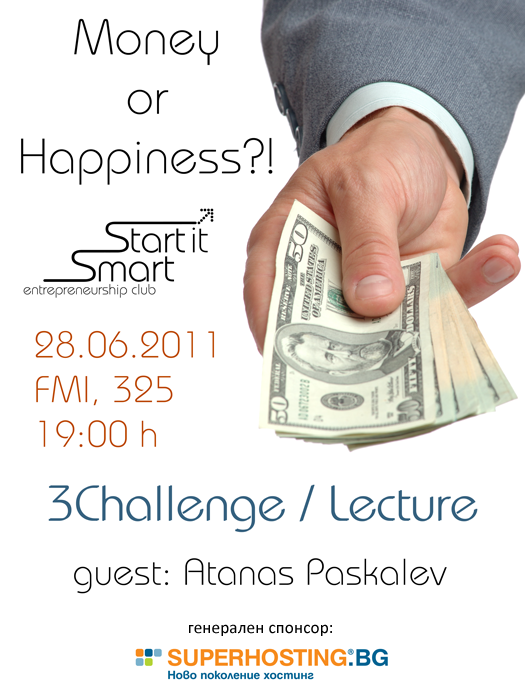 19:20 – 20:00 – Презентация на гост-лектор Атанас Паскалев на тема „Щастие или пари?“
