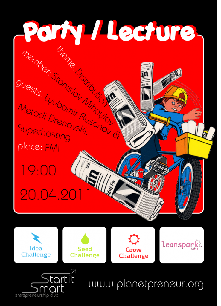 Сезонът на Парти/Лекциите 2011 продължава! Този месец тя ще е на 20 април (сряда) от 19:00 часа във ФМИ (факултет по Математика и Информатика) на Софийски Университет, улица “Джеймс Баучер”, номер 5).